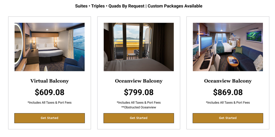 *Pricing per person based on double occupancy (Single occupancy available at double the stated prices). Additional daily onboard charges for staff apply.