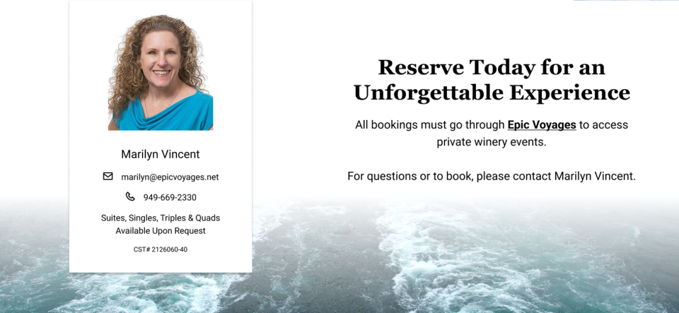 Questions? contact Marilyn Vincent marilyn@epicvoyages.net